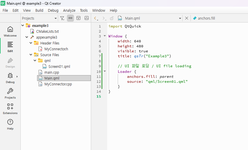 ๐Ÿ‘‰ ์ด ๋ถ€๋ถ„์€ ์ถœ๋ ฅ์€ C++์ด ์ˆ˜ํ–‰ํ•˜๊ณ  C++์ฝ”๋“œ๋ฅผ QML์— ์—ฐ๊ฒฐํ•˜๋Š” ๊ฒƒ์— ๋Œ€ํ•œ ์„ค๋ช…์ž…๋‹ˆ๋‹ค.