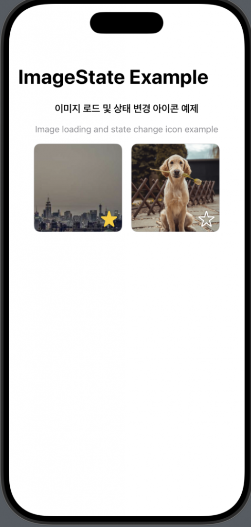 Text("이미지 로드 및 상태 변경 아이콘 예제")