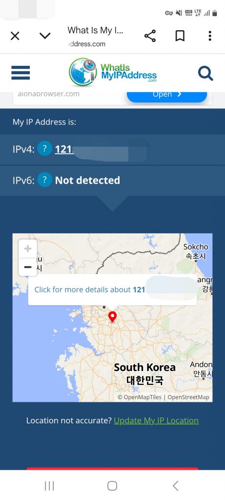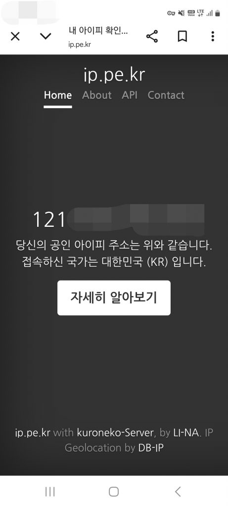 Search for “my IP”(korean) or “what is my IP address” in the portal site search bar or on your mobile phone browser.