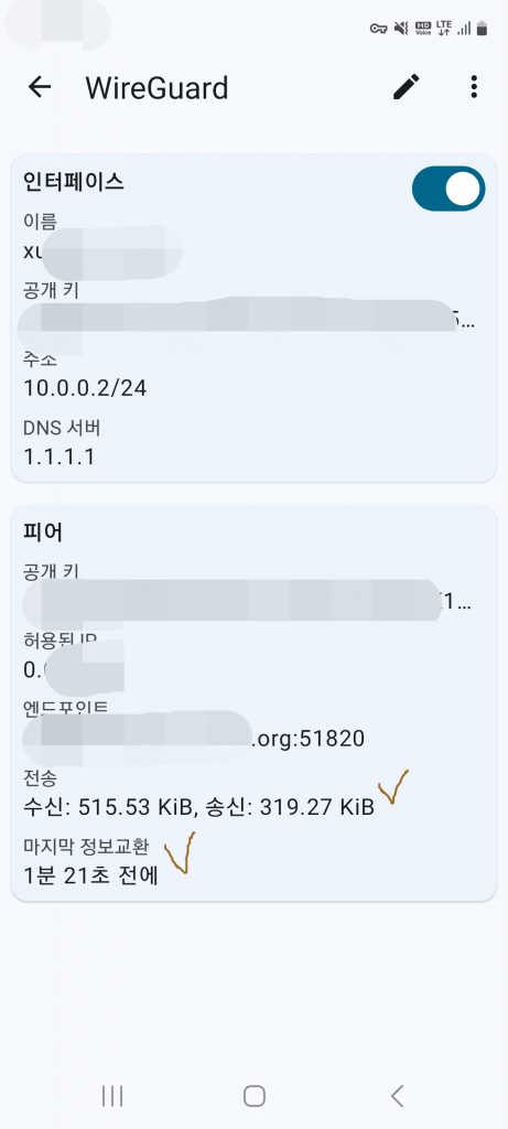 확인된 아이피 주소가 공유기에 연결된 아이피 주소와 일치하는지 확인하면 wireguard가 정상 작동하는것입니다.