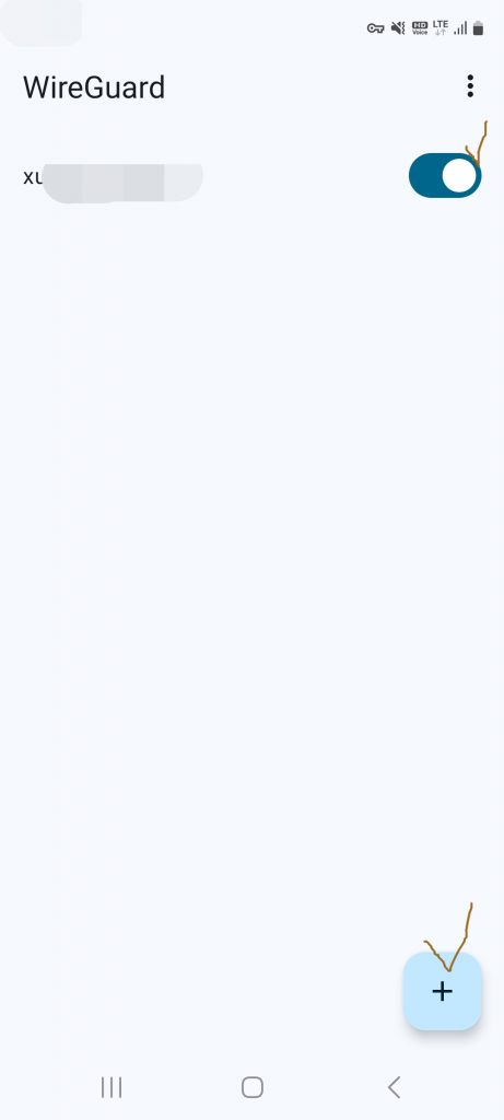 ✔️모바일 폰에서 wireguare앱 받아서 + 탭하고 QR코드 스캔하고 이름을 입력 합니다.