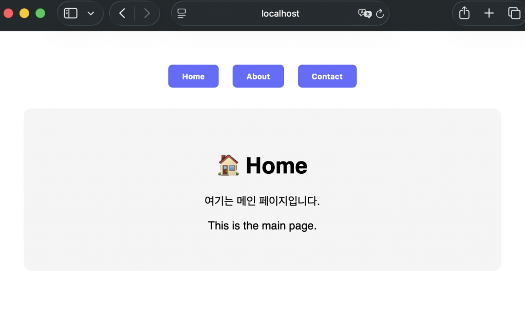 ✔️ 각 버튼을 누르면 다음과 같이 페이지이동하지 않고 화면만 바뀝니다.