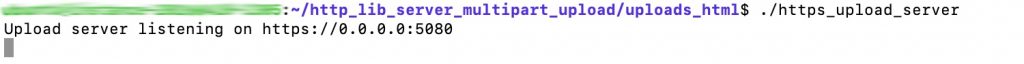 std::cout << "Upload server listening on https://0.0.0.0:5080\n";